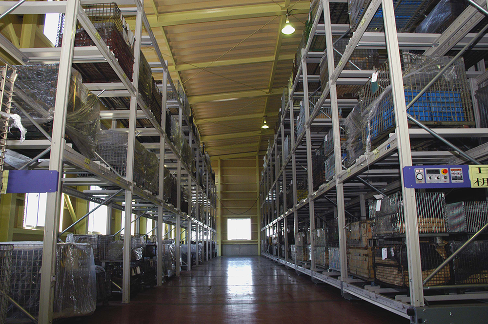 | 自動ラック×10 台車最大積載量16,000kg/間口×10(中型パレット約800枚) | |